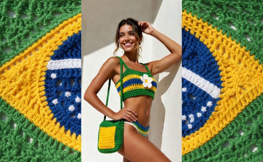 Especialmente em 2026, ano de Copa do Mundo, uma tendência delicada e cheia de personalidade vem ganhando força: peças de crochê inspiradas nas cores e na energia do Brasil.